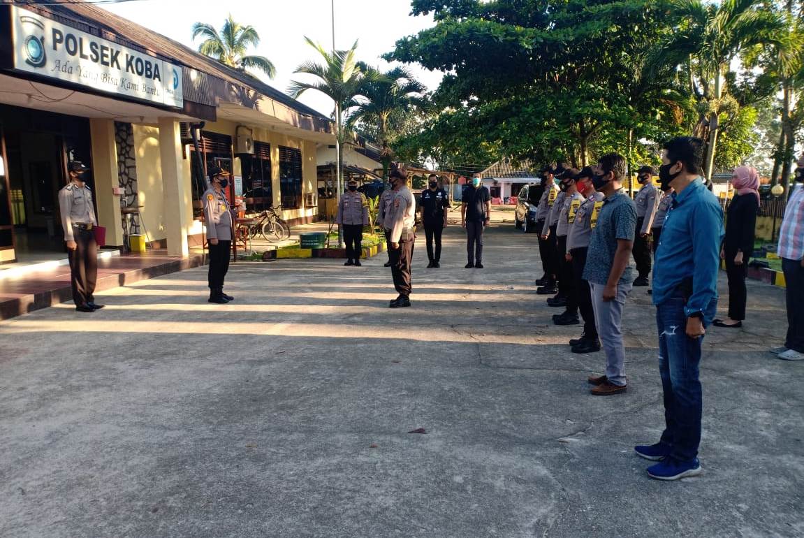 Hadir dalam giat apel tersebut Kapolres Bangka Tengah AKBP Slamet Ady Purnomo, S.I.K, S.H, M.H,Kabag Ops Polres Bangka Tengah,Kasat Reskrim Polres Bangka Tengah,Kasat Intelkam Polres Bangka Tengah,Kapolsek Koba beserta Personil Polsek Koba sebanyak 27 orang