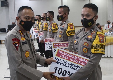 Capai target 100 % vaksinasi 6 Bhabinkamtibmas ini Diganjar penghargaan oleh Irjen Pol Drs. Yan Sultra I, SH