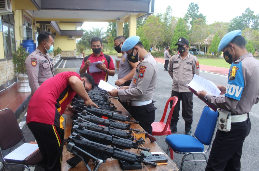 Humas.polri.go.id- Bangka tengah, Propam Polres Bangka tengah menggelar pemeriksaan senjata api (senpi) milik anggota dari berbagai fungsi di Polres Bangka tengah, Jumat (26/02/2021).